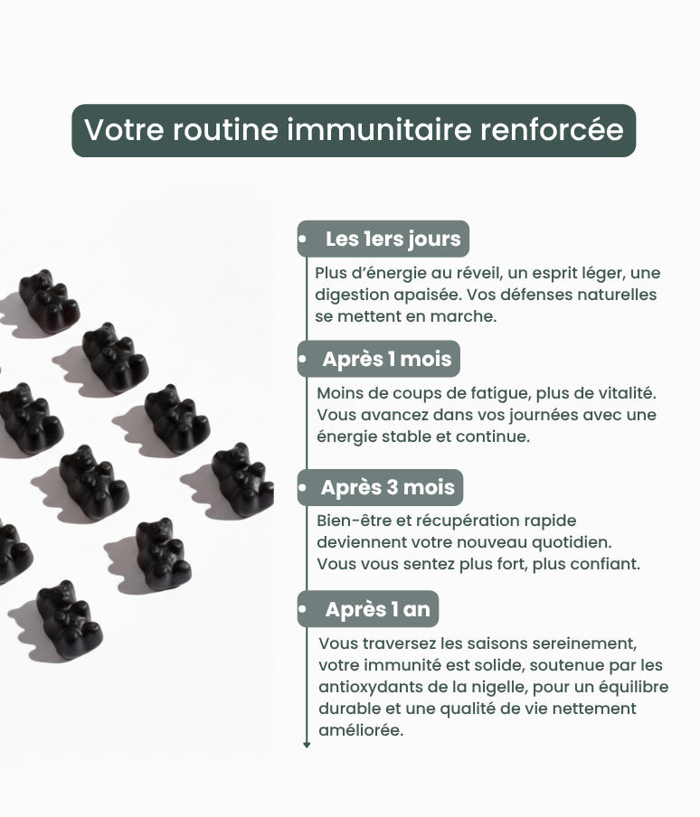 Je ressens les bienfaits de la nigelle, facile à avaler avec un très bon goût c’est top ! 😁