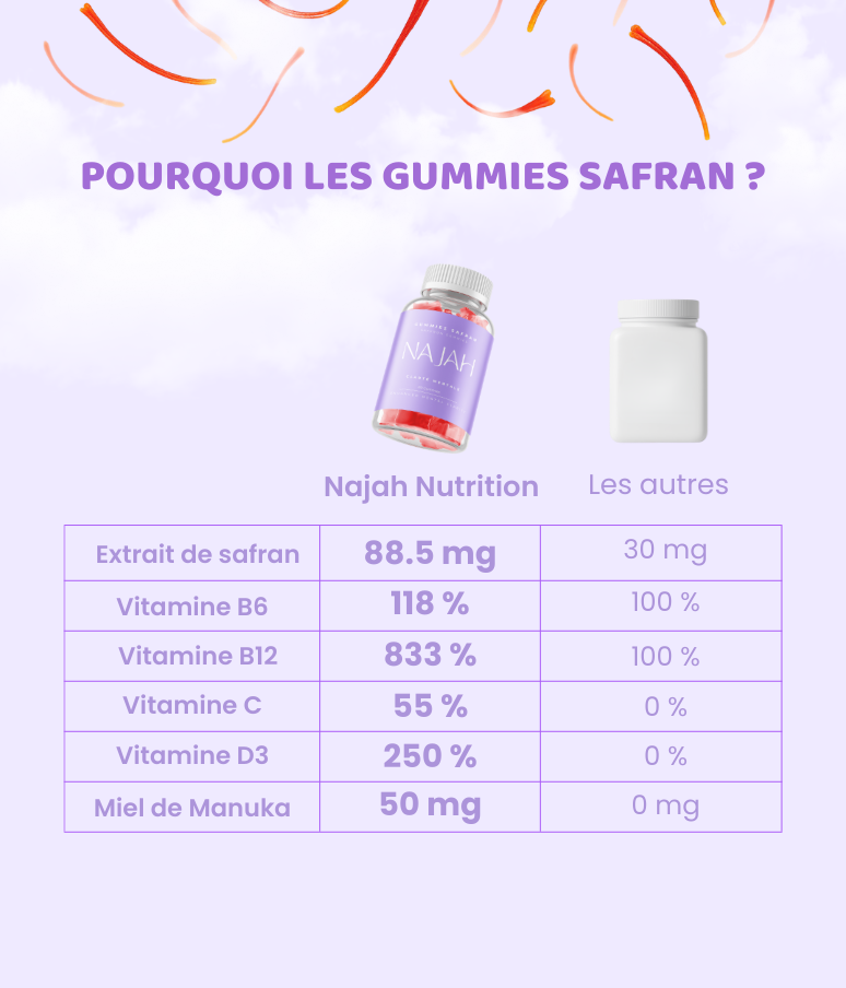 Yes, you can combine a course of Nigella Gummies with a course of Saffron Gummies . Their complementarity helps support both the immune system (Nigella) and mental well-being (Saffron). Just be careful not to exceed 2 gummies per bottle per day .